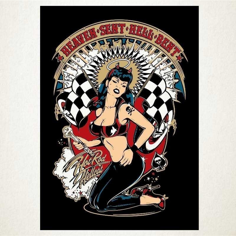 Heaven sent hell bent es un vinilo que representa los iconos de los grupos que se formaron en torno a las motos custom a principios de los años cincuenta con una estetica innovadora en su momento.