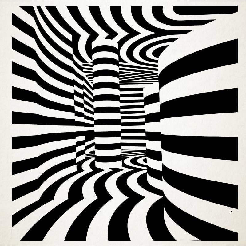 El logo realizado en vinilo adhesivo es una composición de un laberinto psicodelico.