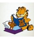 Garfield en este diseño esta en una actitud cariñosa leyendole cuentos a su osito.