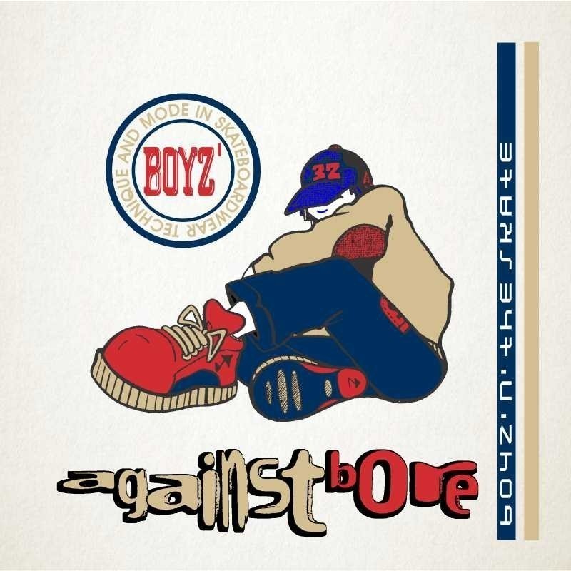 Sticker adhesivo de tema skate donde se alude a la técnica y a la moda de este deporte.